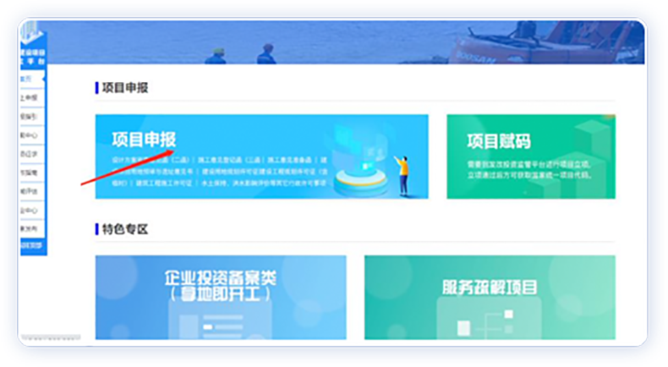 点击新增项目进行项目创建,创建完成后自动返回该页面, 点击创建好的项目进行事项申报。
