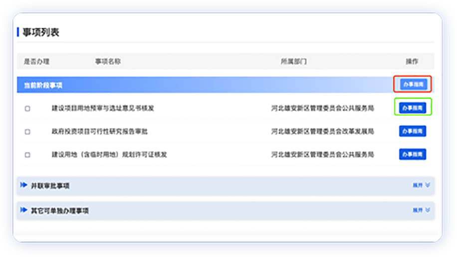 3点击办事指南可查看事项信息, 办事指南分为阶段办事指南和单事项办事指南 找到对应事项