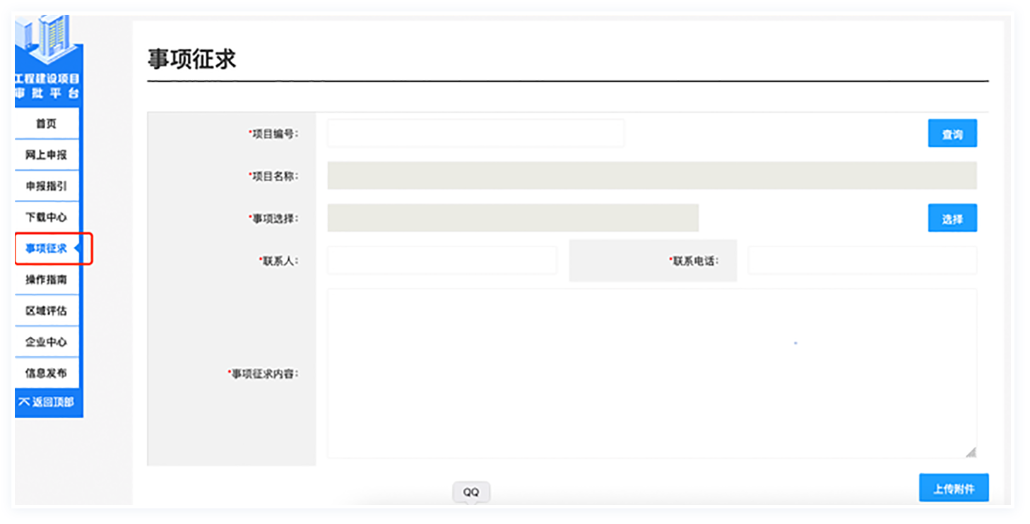 1 点击事项征求按钮,进入到事项征求页面,填写征求信息